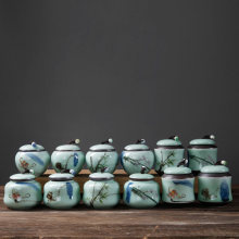 凝香阁 手绘龙泉青瓷迷你茶叶罐 陶瓷 小号便携随身密封罐 香粉罐