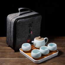 凝香阁 龙泉青瓷/定窑一壶四杯陶瓷便携布袋旅行功夫茶具礼品套装