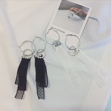 韩国气质网红款长款蕾丝水钻花朵耳环耳钉耳饰女