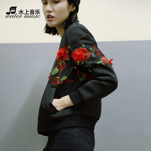水上音乐 2017春装新品拼接立体花棒球服女 休闲宽松百搭短外套