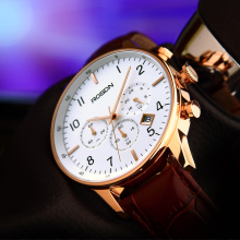 劳士顿正品多针运动男士手表 防水时装表石英表真皮带腕表男表