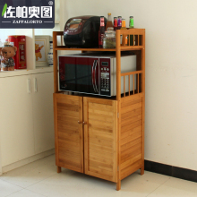 楠竹厨房置物架微波炉架实木落地锅架厨房用品收纳储物架带门储物