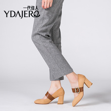 一代佳人方头单鞋高跟鞋女春2017新款复古粗跟一字扣玛丽珍鞋女鞋