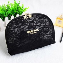 新款化妆品包 女 典雅复古蕾丝花网纹 黑色 大号 手拿收纳包包邮