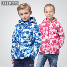 JEEP/吉普童装 男童女童连帽羽绒服儿童轻薄90白鸭绒迷彩羽绒外套
