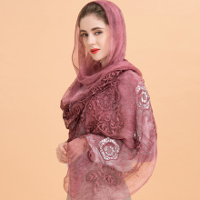 新品春秋季女桑蚕丝刺绣镂空扎染长丝巾真丝纯色围巾披肩两用