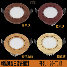 筒灯中式LED孔灯原木纹嵌入式家装吊顶天花灯筒灯三变光玄关孔灯