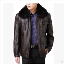 冬装中年皮衣男加绒加厚爸爸装皮毛一体翻领外套中老年男士皮夹克