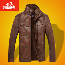 2016秋冬皮衣男中年立领休闲男士皮夹克中老年外套爸爸装加绒大码