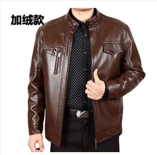 中年男士冬款休闲外套大码新款冬装皮夹克加绒加厚中老年皮衣男装