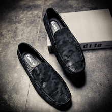 新款迷彩豆豆鞋男磨砂真皮英伦套脚休闲韩版懒人鞋夏季潮鞋子黑色