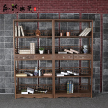 红木家具鸡翅木四层带抽屉书架书柜办公书房中式仿古实木家具