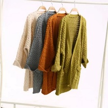 2015秋季开衫中长款女装纯色针织衫宽松新款品牌街头毛衣毛针织衫