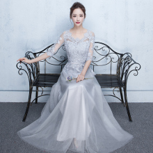 姐妹团伴娘服长款韩版灰色晚礼服2017新款宴会显瘦主持人演出礼服