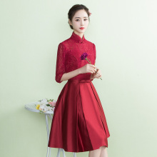 2017夏季中长款新娘敬酒服旗袍短款红色新娘结婚礼服中式敬酒礼服