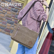 帆布男包单肩斜挎包斜背大容量手提包横款休闲男士a4公文包韩版