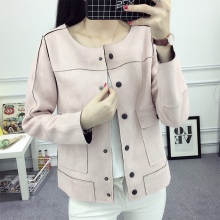 左品2017春秋装新款韩版百搭麂皮绒纽扣休闲短外套女长袖夹克开衫