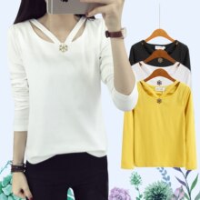 左品长袖打底衫T恤女2017春夏新品韩版女装修身显瘦休闲纯棉上衣