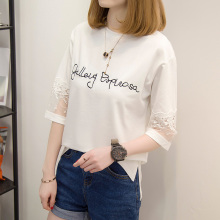 左品2017夏装新款短袖t恤女宽松学生打底衫体恤衫五分袖上衣女