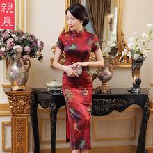 真丝旗袍连衣裙春夏装长款改良复古婚礼服修身加大码妈妈装桑蚕丝