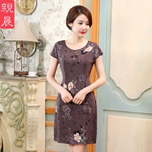 中老年真丝连衣裙旗袍夏装短款女装显瘦桑蚕丝2017新款妈妈装大码