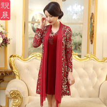 中老年女装春夏装参加结婚礼服妈妈装两件套装婆婆装婚宴大码长袖