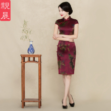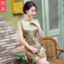 亲晨真丝旗袍连衣裙夏少女装短款修身桑蚕丝2017新款日常改良时尚