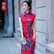 婉蝶长款双层修身旗袍连衣裙红色婚礼婚宴日常旗袍裙新款夏季长裙