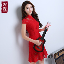 婉蝶短款旗袍连衣裙修身2017春新款改良大码日常时尚少女旗袍裙夏