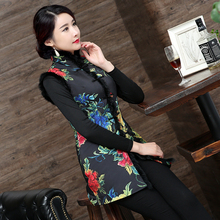 2016冬装新款中式夹棉旗袍上衣民族风女装唐装女士棉背心马夹马甲