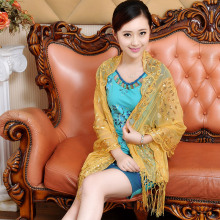 旗袍披巾搭配 春秋季孔雀刺绣旗袍礼服披肩 婚纱礼服蕾丝亮片披巾