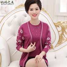 中老年女春秋装长袖套头针织衫毛衣妈妈装T恤衫薄款打底衫羊毛衫