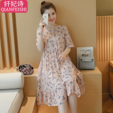 夏季新款小清新碎花孕妇裙中长款宽松透气孕妈妈夏装雪纺连衣裙子