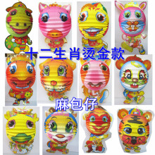 过年12生肖卡通纸灯笼儿童手提折叠纸LED灯笼节日花灯装饰春节