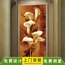 简约欧式玄关3d立体墙纸走廊壁画过道竖版壁纸 无缝墙布 玉兰花