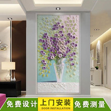 定制无缝壁画 走廊玄关 油画菊花 无纺布无缝 有框花瓶 3d壁纸
