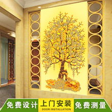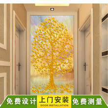 玄关走廊背景墙纸壁纸壁画进门发财树黄金树整张无缝立体3D中式