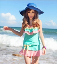 泳衣女士分体泳衣荷叶边小清新可爱学生少女显瘦遮肚保守游泳装