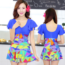 荷叶边两件套游泳衣女保守学生分体裙式钢托遮肚韩国温泉小清新