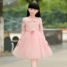 女童长袖连衣裙 春装 新款中大儿童连衣裙 公主蕾丝纱裙清新