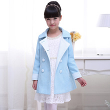 童装女童春装外套新款儿童中长款撞色双排扣休闲女童外套