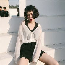 2017夏季女装韩版bf宽松薄款短外套百搭刺绣休闲上衣长袖防晒衫