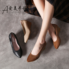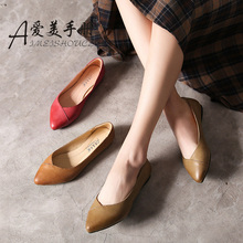 爱美手册大码女鞋41-43新款复古真皮尖头平底鞋女浅口单鞋软底鞋