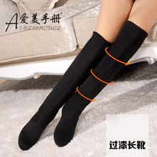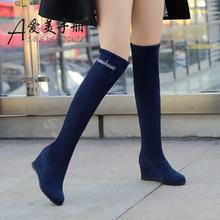 爱美手册春秋显瘦长靴女弹力靴高跟长筒靴子及膝靴坡跟绒面过膝靴