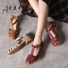 爱美手册2017夏季新款时尚凉鞋女平底大码女鞋镂空包头真皮罗马鞋