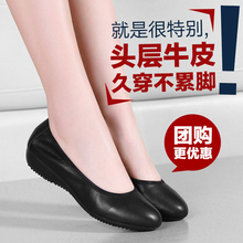 爱美手册真皮软底工作鞋女黑色妈妈鞋平底浅口单鞋平跟防滑大码43