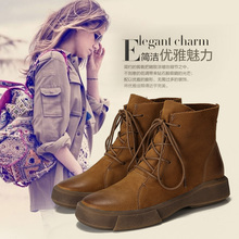爱美手册春秋短靴马丁靴女英伦风复古真皮女靴子系带平底单靴大码
