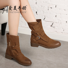 爱美手册春秋单靴平底短靴加绒复古马丁靴女英伦风厚底真皮女靴子