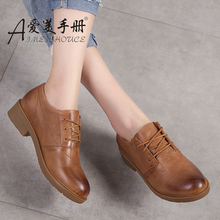春季中跟单鞋女真皮英伦风女鞋大码41学院风休闲文艺复古小皮鞋子