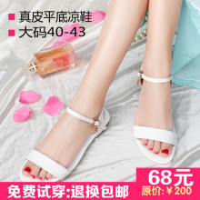 2017夏季新款平底平跟凉鞋女真皮露趾一字搭扣学生百搭休闲鞋大码